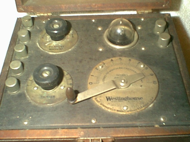 Made in 1921, this is the early version with the wood dial panel and poplar case. It has the original instruction label and includes a working brass based, tipped WD-11 tube. $235 plus shipping.