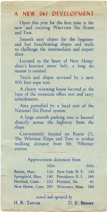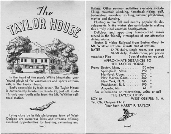 The Taylor House was owned and operated by my wife's parents during the late 1940's. They also ran the ski slope on Mt. Whittier.