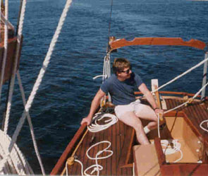This is a gaff rig Maxwell cutter I built during the years 1972 to 1986. She was christened on August 17, 1985 as the Thomas C. Allen in memory of our oldest son, Tom, who died in 1979. She is mahogany on white oak with a 10hp Volvo diesel engine. There are three bunks and the settee's have fold down back rests. She sets a main, staysail, jib, jib topsail and gaff topsail for a total of 575 sq ft of sail. Displacement is 4 1/2 tons.